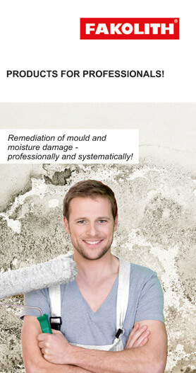 FAKOLITH produces and sells effective and proven system products for the remediation of mould in indoor areas. In particular, the focus is on the professional removal of mould from walls and ceilings in flats and living areas. For this purpose, the FAKOLITH 3-phase system with cleaning, substrate remediation and final painting has proven itself many times over. In addition to the anti-mould packages for different requirements and smaller areas of up to 10 m², FAKOLITH offers further combinable system products for pre-treatment, degreasing, priming as well as anti-mould paints for final paint films with high qualitative and quantitative resistance against bacteria, viruses and fungi, even on large areas.